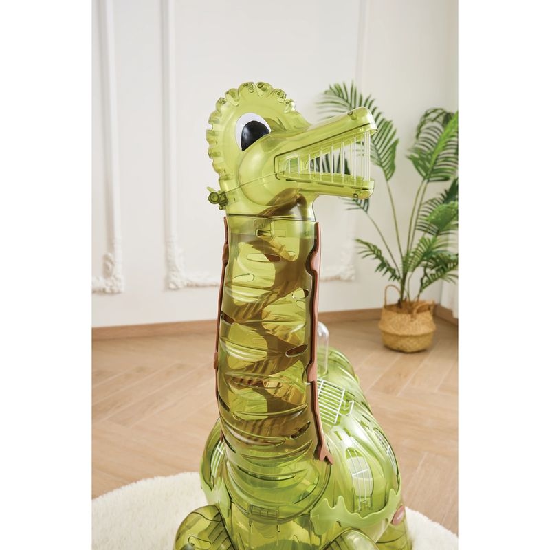 La M-Pets Gabbia Habitat Interattivo per Criceti Dinosauro è un habitat spettacolare a forma di dinosauro, che trasforma ogni giornata del tuo criceto in un viaggio nel tempo! Una struttura imponente e trasparente, tutta da esplorare, progettata per offrire stimoli, movimento e riposo in totale sicurezza. Questo habitat include una ruota per esercizi, una bottiglia d’acqua comoda da usare, un piattino per alimenti e tante aree gioco su più livelli. Il design a tema preistorico con testa mobile e tunnel interni conquisterà anche i più piccoli di casa, rendendo l’interazione con l’animaletto ancora più coinvolgente. Realizzata con materiali resistenti e facili da pulire, è la soluzione perfetta per garantire benessere, attività fisica e un rifugio sicuro al tuo criceto. Un vero parco divertimenti in formato dinosauro!