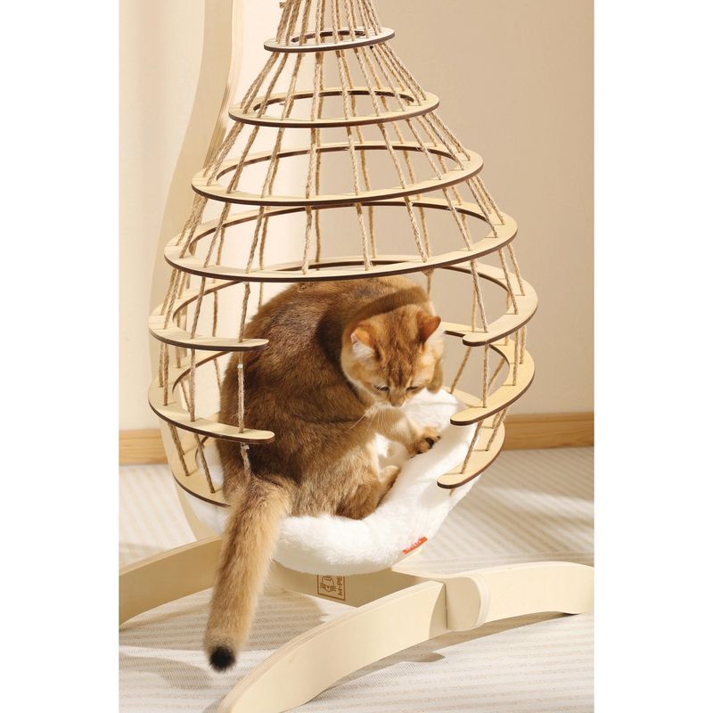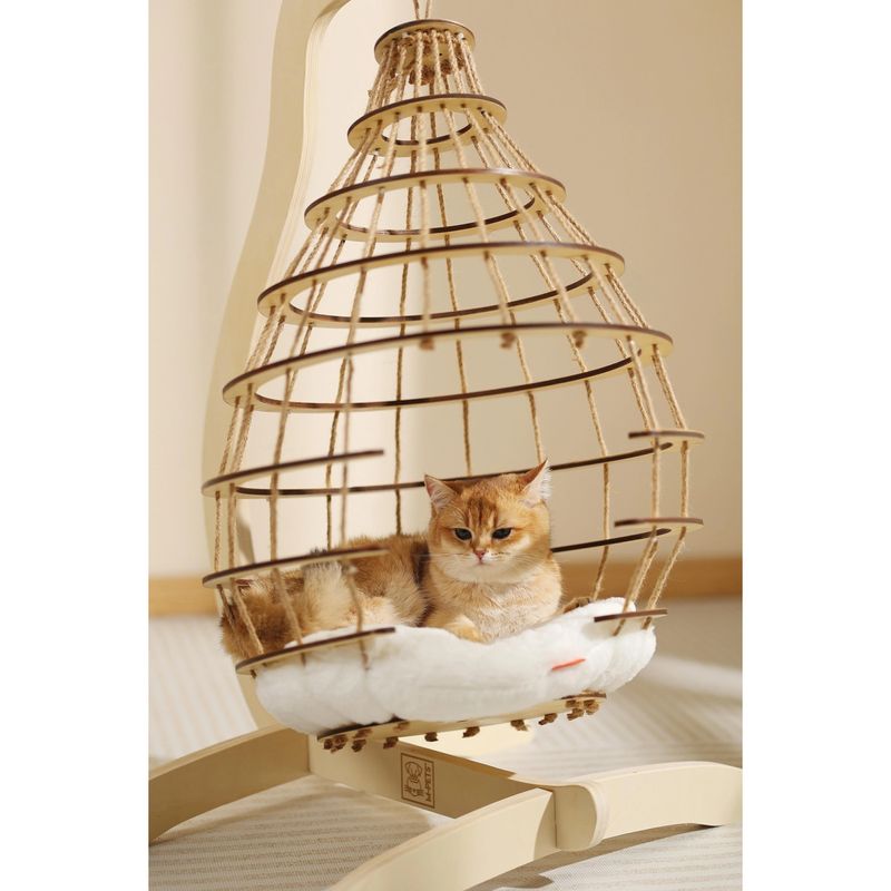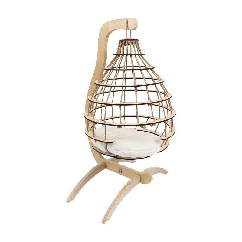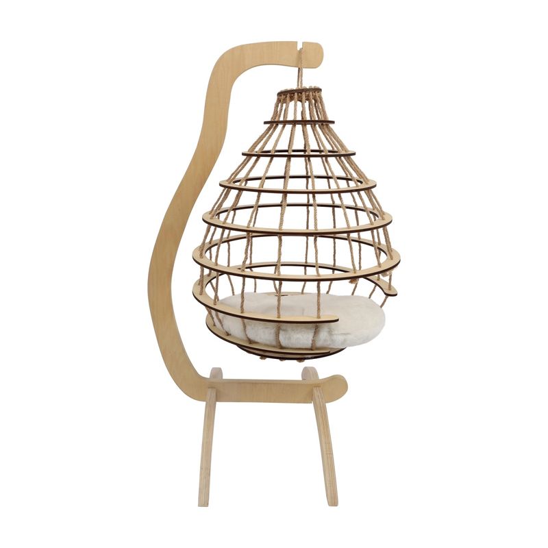 La M-Pets Gatto Cuccia Sospesa Cloud con Cuscino è molto più di una cuccia: è un angolo di pace sospeso tra stile e relax. Progettata per offrire al tuo gatto una postazione sopraelevata dove riposare, osservare o sonnecchiare, questa cuccia combina una struttura robusta in legno con linee armoniose e naturali. Il design a sospensione garantisce non solo comfort ma anche un effetto antistress, rendendola perfetta per gatti curiosi e indipendenti. Il cuscino interno ultra morbido, lavabile a mano, offre un appoggio soffice e avvolgente, mentre la struttura traforata, con corde intrecciate in stile boho chic, crea un nido traspirante, elegante e sicuro. Ideale per gatti di tutte le età, si integra perfettamente in qualsiasi ambiente domestico grazie al suo stile ricercato.
