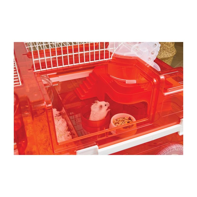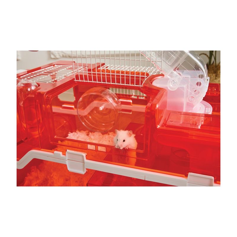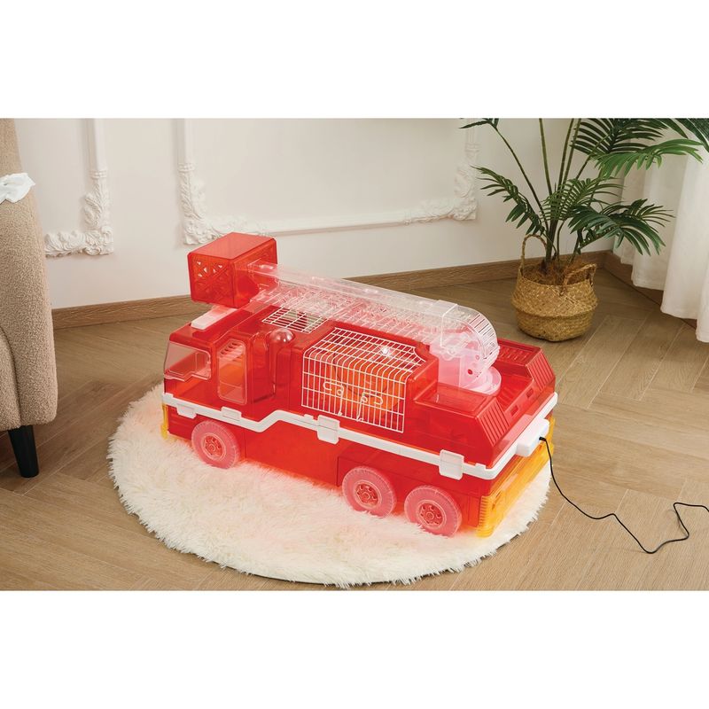 Il M-Pets Gabbia Habitat Interattivo per Criceti Hamitruck è un habitat interattivo a forma di camion dei pompieri che trasforma la routine del tuo criceto in un’avventura ricca di stimoli! Dotato di illuminazione LED e una struttura multilivello super dettagliata, questo truck offre spazi diversificati per esplorare, giocare, riposare e muoversi in libertà. All'interno troverai una ruota per esercizi, una bottiglia d’acqua, tunnel trasparenti e aree di sosta, tutti progettati per garantire benessere e movimento quotidiano. Il tutto è facilmente alimentabile grazie al caricatore USB, rendendo l’esperienza ancora più moderna e sicura. Ideale per bambini e adulti che vogliono osservare il proprio criceto vivere in un habitat originale e super divertente!