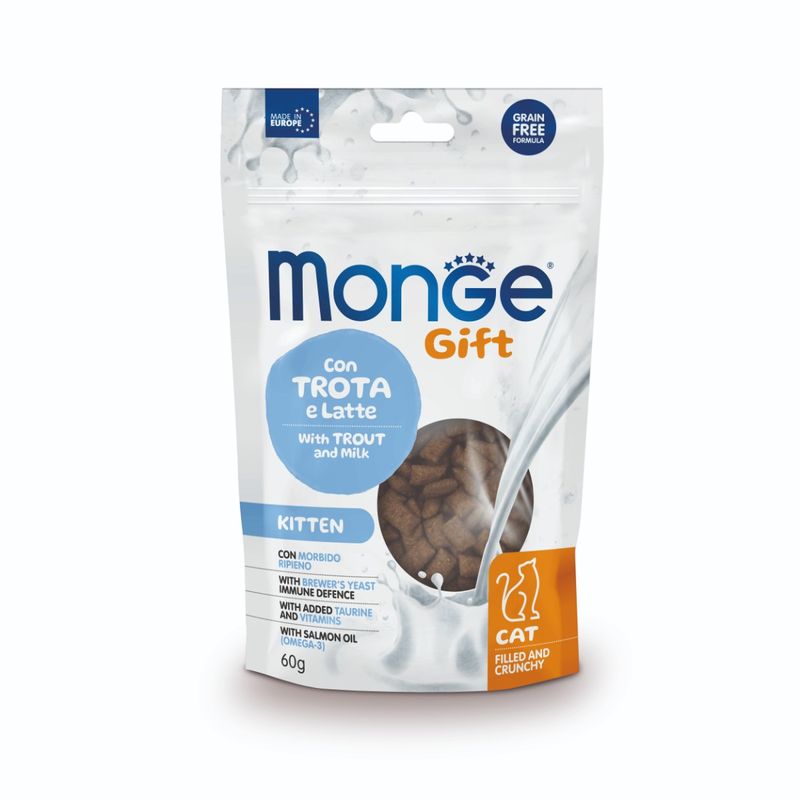 Rendi felice il tuo micetto con una coccola sana e gustosa: prova subito Monge Gift Cat Kitten 60G!