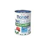 Monge Vet Solution Diabetic Obesity Dog è l'alimento perfetto per tenere sotto controllo il suo peso forma. Questo cibo umido dietetico è formulato per la riduzione dell’eccesso di peso corporeo e controllo dell’apporto di glucosio (diabete mellito). La formulazione è caratterizzata da un basso valore energetico e da basso livello di mono- e disaccaridi. Inoltre, i semi di piantaggine per ritardare lo svuotamento gastrico e indurre la sazietà, mentre gli xilo-oligosaccaridi (XOS) aiutano a preservare il microbiota intestinale. La formulazione è caratterizzata da un basso contenuto di proteine, ma di alta qualità, e da un ridotto tenore di fosforo e proteina grezza. Inoltre, ha una bassa concentrazione di calcio e vitamina D, con proprietà alcalinizzanti dell’urina. Privo di cereali, questo alimento include nucleotidi per il supporto del sistema immunitario, cardo mariano per aiutare la convalescenza, e un elevato livello di elettroliti. Gli ingredienti altamente digeribili garantiscono un'ottima assimilazione dei nutrienti e supportano la salute generale del tuo cane. Infine, la consistenza morbida e saporita del paté rende questo mangime appetibile anche per i cani con il palato più esigente.