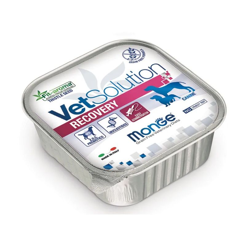 Monge Vetsolution Recovery Vaschetta, è un alimento umido dietetico completo e bilanciato studiato appositamente per i cani adulti, formulato per la ripresa nutrizionale durante la fase di convalescenza Come fonte proteica, questo paté contiene il maiale, che sono proteine facilmente digeribili per ridurre il carico digestivo e migliorare l'assorbimento dei nutrienti. Questa formulazione, priva di cereali, contiene Nucleotidi a supporto del sistema immunitario, Cardo Mariano per il supporto della convalescenza, Xilo-oligosaccaridi (XOS) per preservare il microbiota intestinale e la formulazione è caratterizzata da proteine di alta qualità e ridotto tenore di fosforo e proteina grezza, bassa concentrazione di calcio, di vitamina D e proprietà alcalinizzanti dell’urina. Infine, la formulazione è caratterizzata da un elevato livello di elettroliti e ingredienti altamente digeribili, garantendo un'ottima assimilazione dei nutrienti e supportando la salute generale del tuo cane. La consistenza morbida e saporita del paté rende questo mangime appetibile anche per i cani con il palato più esigente.