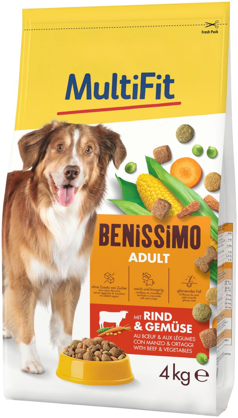 Investi nella salute e nel benessere del tuo cane con MultiFit Benissimo Dog Adult Manzo e Verdure, perché il tuo fedele amico merita solo il meglio.