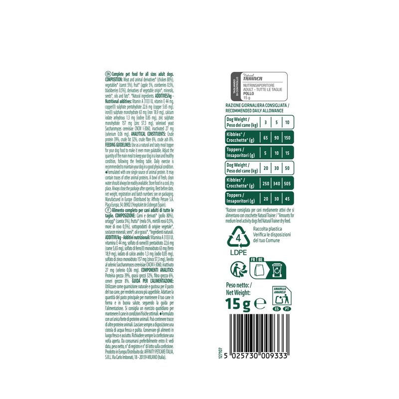 N.B. Il prodotto è disponibile nel formato da 15G nei gusti a scelta tra; Pollo.