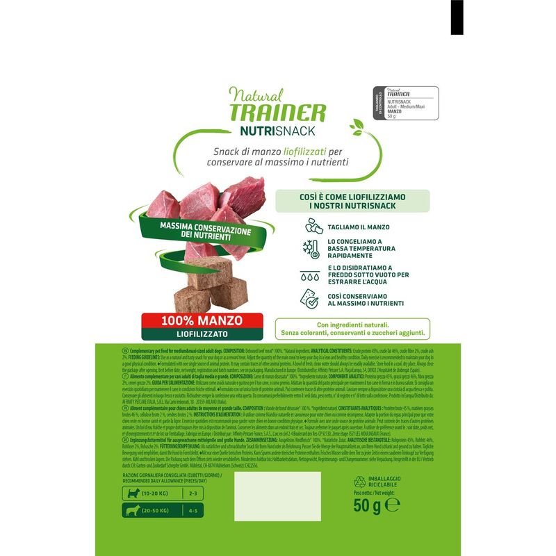 Natural Trainer Dog Nutri Snack 50G è un delizioso snack croccante formulato al 100% con carne liofilizzata, sano e naturale dedicato al tuo cane adulto. Formulato con un’unica fonte di proteine animali. Con ingredienti naturali, senza coloranti, conservanti e zuccheri aggiunti.