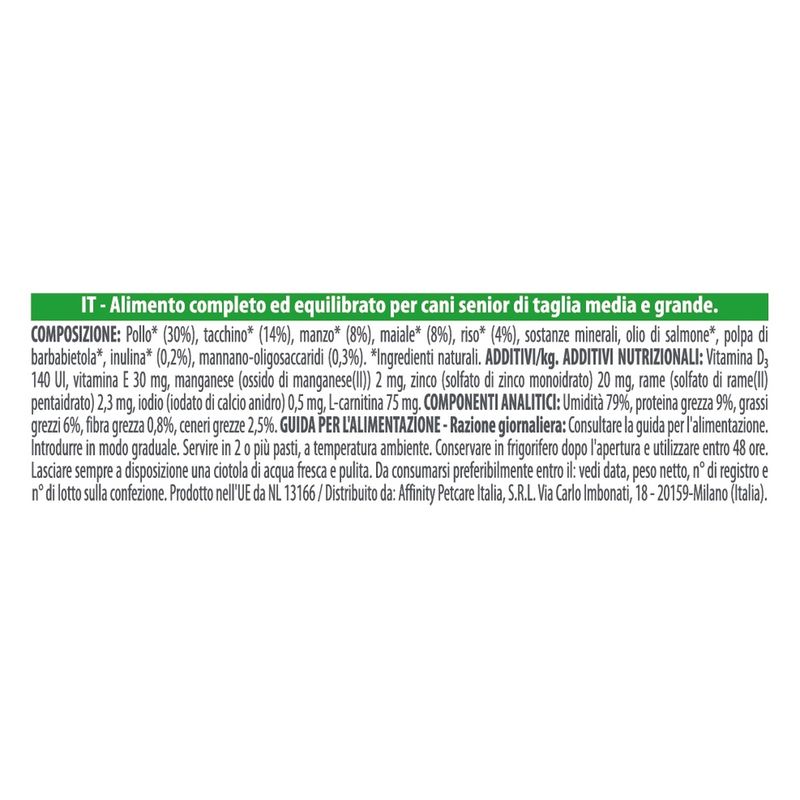• Adatto a cani anziani di taglia media e grande a partire dai 10kg di peso, dai 6 anni.
