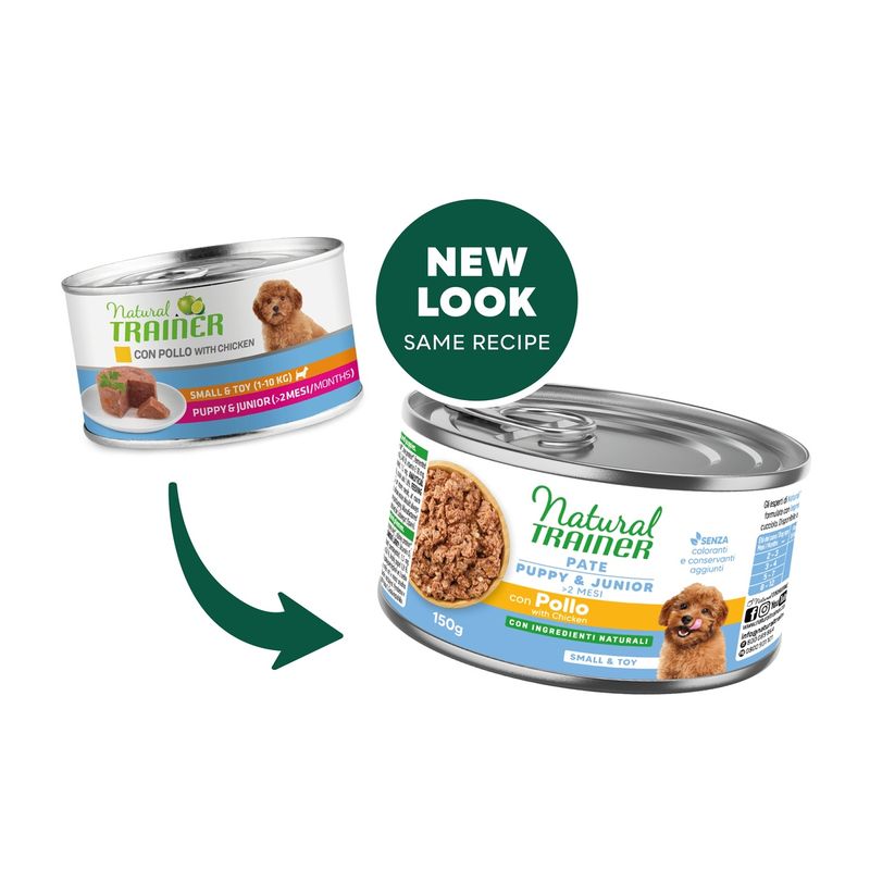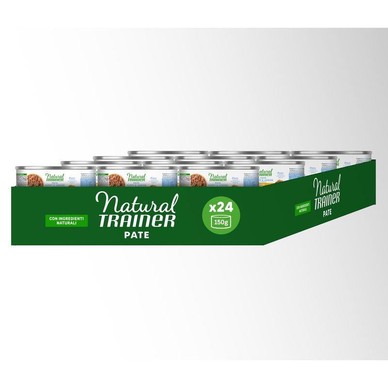 Attenzione: Natural Trainer Puppy Lattina Multipack 24x150G si rinnova con nuovo packaging ma la ricetta rimane la stessa. Potresti ricevere il nuovo o il vecchio pack a seconda della disponibilità a magazzino.