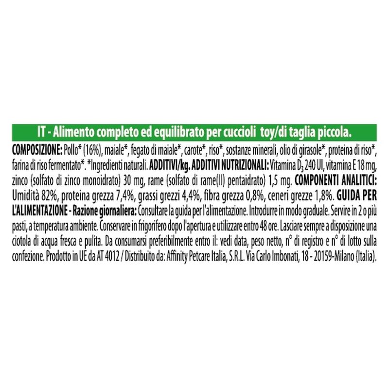 N.B. Il prodotto è disponibile nel formato lattina multipack 24x150G, gusto Pollo.