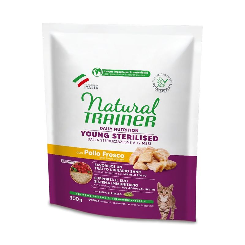 Scopri la nutrizione sana e completa con il Natural Trainer Young Sterilised Cat Pollo – l’alimento perfetto per accompagnare la crescita del tuo gatto!
