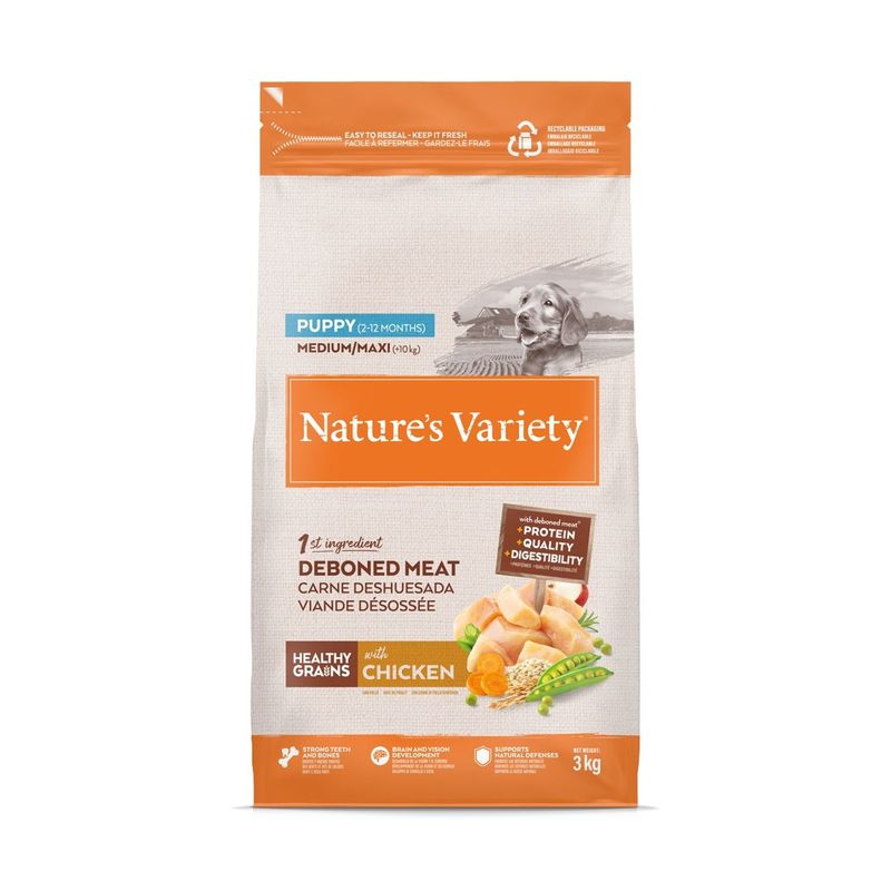 Scegli Nature's Variety Healthy Grains Puppy Medium/Maxi al Pollo per offrire al tuo cucciolo una dieta sana e bilanciata, formulata appositamente per soddisfare le sue esigenze nutrizionali.
