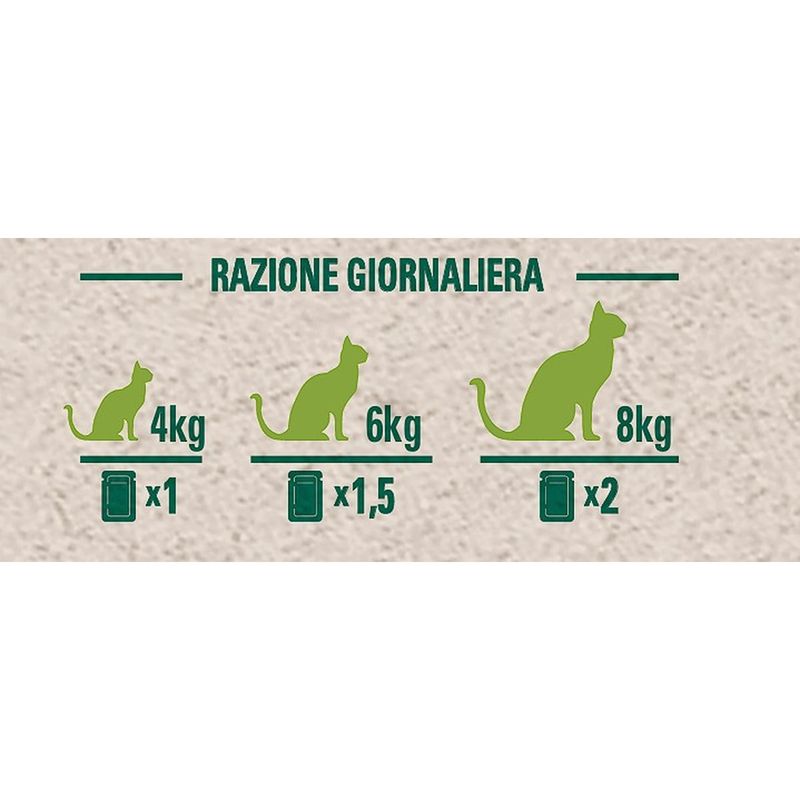 N.B. Il prodotto è disponibile in formato busta multipack da 30x70G, nei gusti: Pollo, Salmone, Tonno.