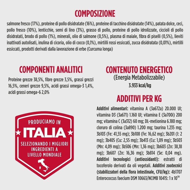 • Confronta I nostri ingredienti principali: I nostri tre ingredienti principali sono fonti di proteine animali. Confrontali con quelli presenti nel cibo che utilizzi per nutrire il tuo atleta!