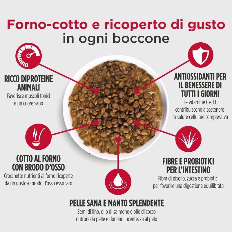 • Baked & Coated: Brodo di ossa disidratato, spolverato e cotto al forno per un gusto eccezionale.