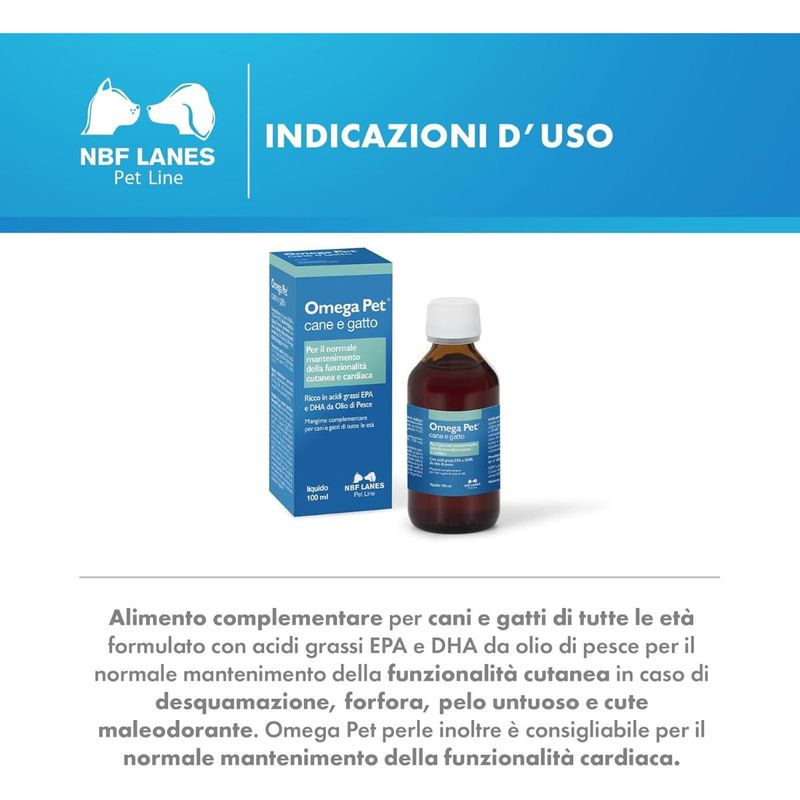 Omega Pet Mangime Alimentare Cane e Gatto formulato appositamente adatto a cani e gatti, ricco di Acidi Grassi Omega 3 a lunga catena (EPA e DHA). Grazie al suo formato in perle, la somministrazione risulta facile e comoda per il tuo animale domestico. Il mangime è particolarmente utile nel trattamento di diverse problematiche della pelle e del mantello, come desquamazione, forfora e pelo untuoso, e supporta anche il recupero da malattie infiammatorie e degenerative. Questo prodotto contribuisce a riequilibrare le alterazioni del sebo, favorendo un miglioramento della salute della pelle e del pelo, grazie all'azione antinfiammatoria dell'olio di pesce. Omega Pet è ideale anche per animali con insufficienza renale cronica, patologie cardiache, articolari o oncologiche. Inoltre, può essere un valido supporto in caso di ipertrigliceridemia o infiammazione intestinale, senza effetti indesiderati. Omega Pet aiuta a migliorare la qualità della vita del tuo pet, supportando la sua salute generale e il benessere cutaneo.