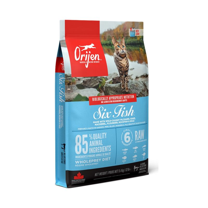 Scegli Orijen Cat Six Fish per garantire al tuo gatto un'alimentazione di alta qualità, che rispecchia la sua dieta naturale e promuove la sua salute e vitalità in ogni fase della vita.
