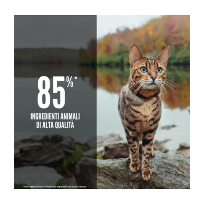 • Arricchito con prebiotici, Omega-3 e taurina.