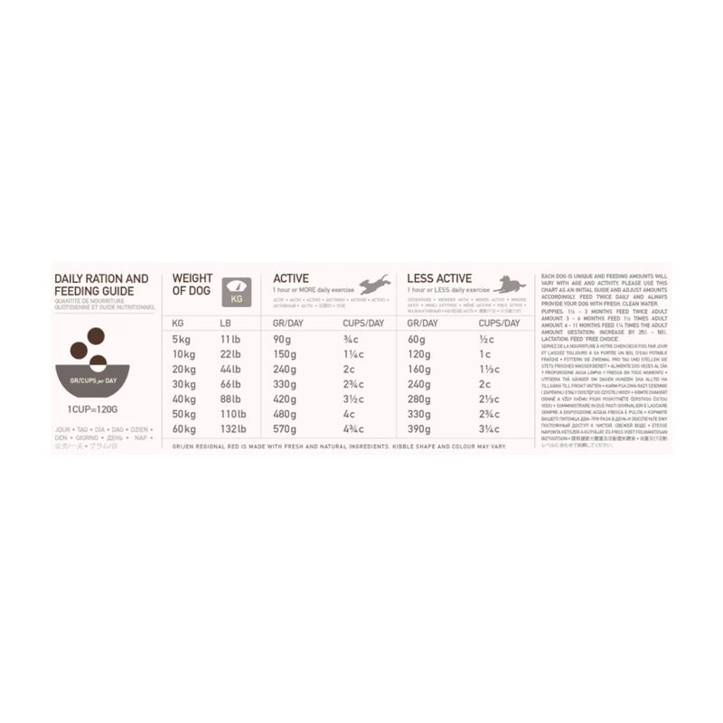 Orijen Dog Regional Red sono crocchette appetitose e genuine per cani di tutte le razze e in ogni fase di età, con una pregiata varietà di carni rosse liofilizzate come Manzo Angus, cinghiale e maiale di prima qualità.