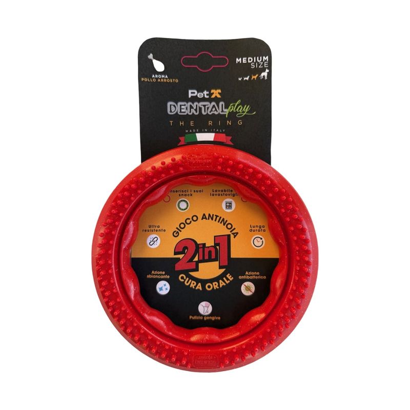 Non lasciare che il tuo piccolo amico si annoi: premialo con il Pet X Gioco Cane Dental Play The Ring Medium– il gioco intelligente che intrattiene e si prende cura del suo sorriso!