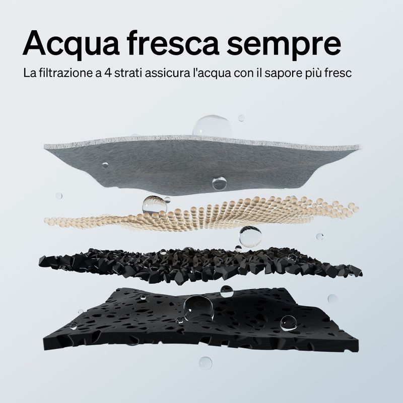 • Sistema di filtrazione a 4 stadi per acqua sempre pulita.
