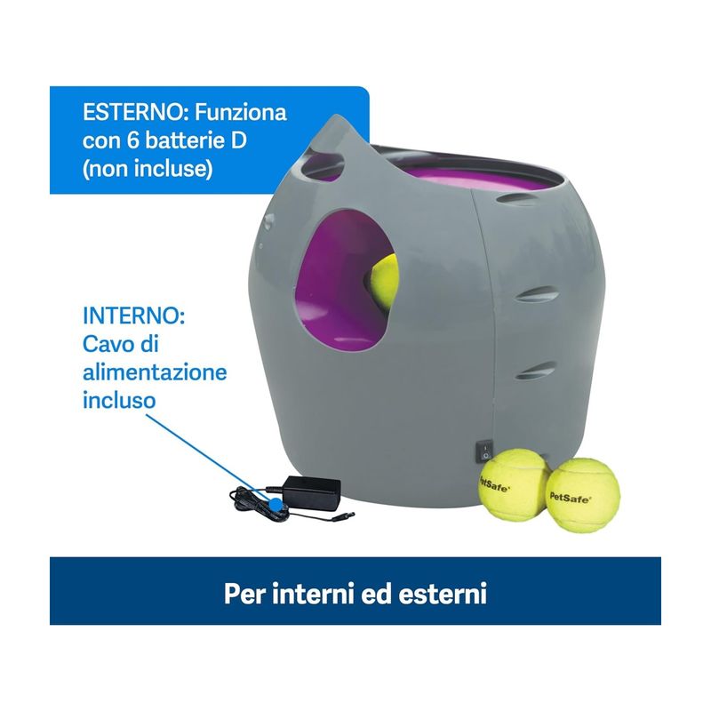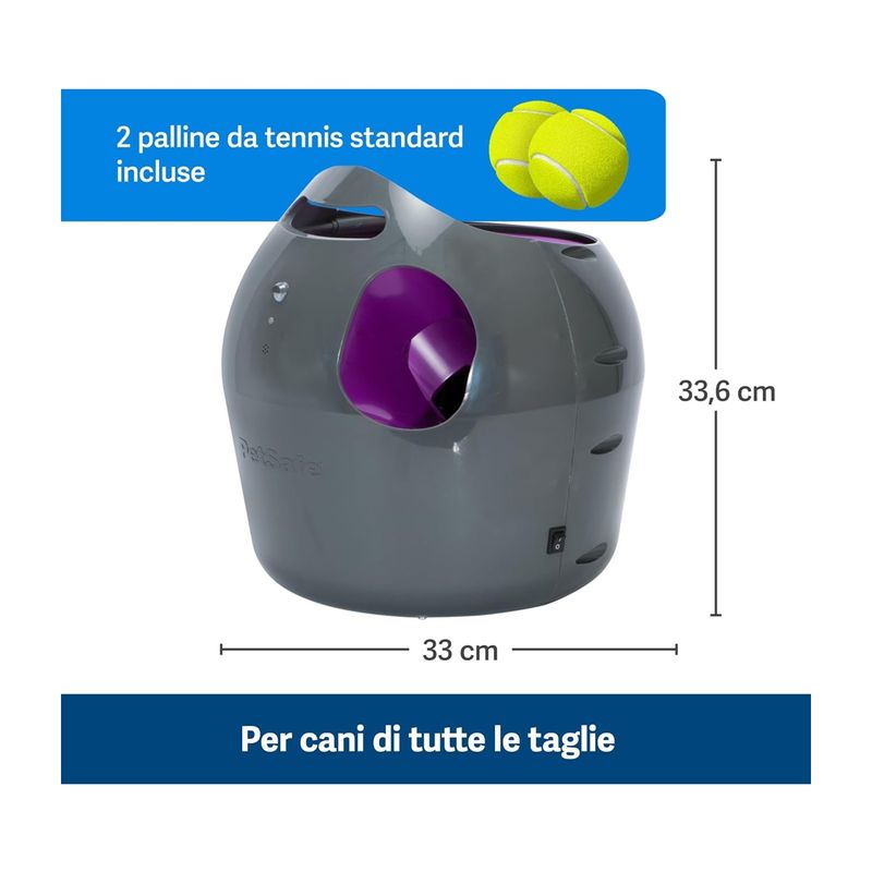 Il Petsafe Gioco Cane Lanciapalle Automatico è il compagno perfetto per le giornate all’insegna del gioco e del movimento. Ideale per cani di tutte le taglie, questo dispositivo intelligente consente al tuo amico peloso di giocare in autonomia con le sue palline preferite, sia in casa che all'aperto. Il lanciatore è resistente all’acqua, funziona con corrente o a batterie e include due palline da tennis standard, pronte all’uso. Puoi personalizzare l’esperienza di gioco regolando la distanza di lancio fino a 9 metri e l’angolo di tiro fino a 45°, con ben 9 livelli di potenza e 6 angolazioni disponibili. Il tuo cane sarà al sicuro grazie ai sensori di movimento anteriori e al segnale acustico pre-lancio che lo aiuta a prepararsi al recupero. In più, la funzione pausa automatica protegge l’animale da un eccessivo affaticamento, attivandosi dopo 15 minuti di attività continua. Un gioco pensato per il benessere fisico e mentale del cane, senza stress per te.