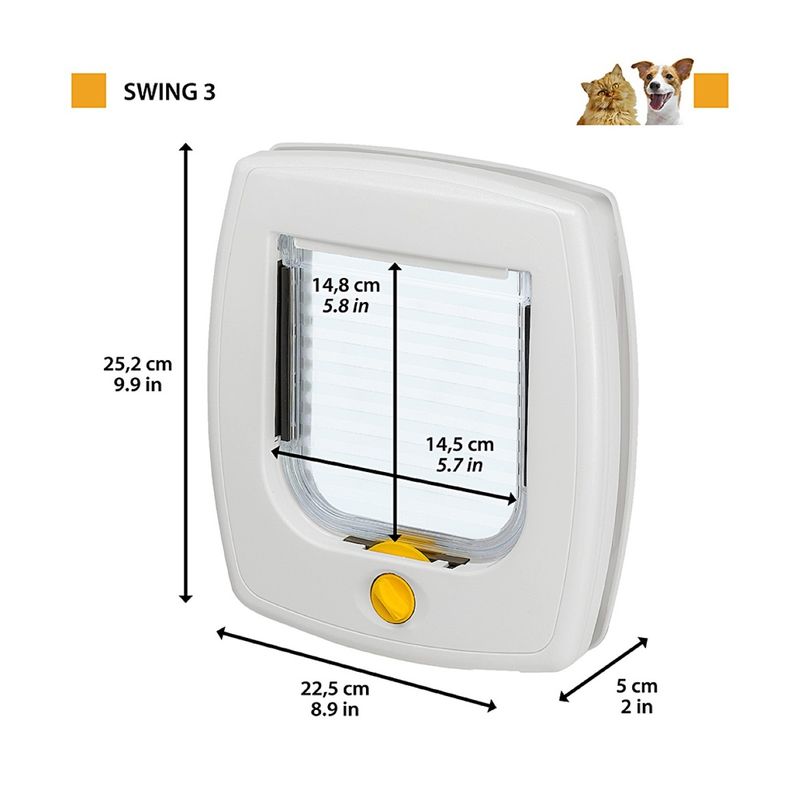 Con la Porta Basculante Swing 3 Basic Bianca, puoi offrire al tuo animale domestico la libertà di movimento che desidera, mantenendo al contempo il controllo sull'accesso alla tua casa.