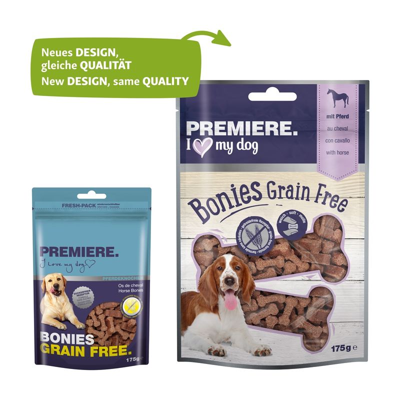 Rendi felice il tuo cane con Premiere Dog Bonies Snack Grain Free 175G! Perfetti per ogni momento speciale!