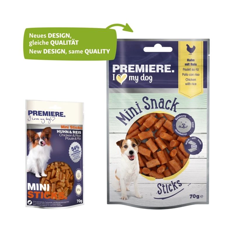 Premia il tuo cane con i Premiere Dog Mini Snack Sticks 70G! Uno snack irresistibile per rendere ogni momento speciale!