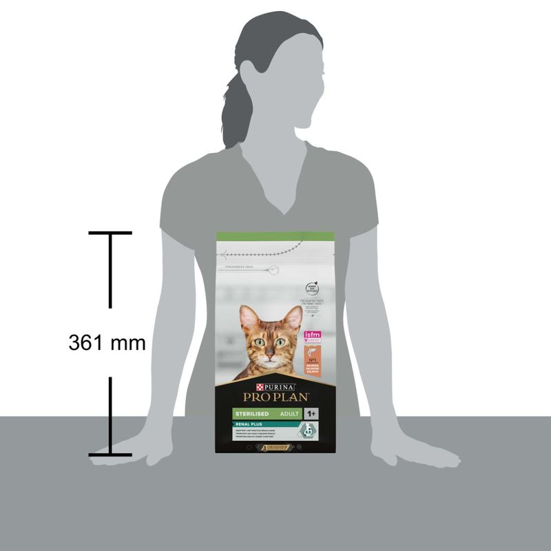 Purina Pro Plan Renal Plus Sterilised Adult 1+ con Salmone è un alimento secco completo per gatti adulti sterilizzati, appositamente formulato per promuovere una sana funzione renale. Questo alimento di alta qualità è ideato per supportare il benessere dei gatti sterilizzati, aiutando a mantenere il tratto urinario in salute e a mantenere un ideale peso corporeo. Questo alimento non solo favorisce la salute renale, ma aiuta anche a proteggere i denti dalla formazione di placca e tartaro, garantendo una cura orale ottimale. La ricetta, altamente appetibile, contiene salmone come primo ingrediente, offrendo proteine di alta qualità che contribuiscono al mantenimento della massa muscolare e al sostegno dell'energia quotidiana. Questo cibo secco di alta qualità è arricchito con nutrienti specifici che supportano la funzione renale, contribuendo a una migliore qualità di vita per il tuo amico felino.