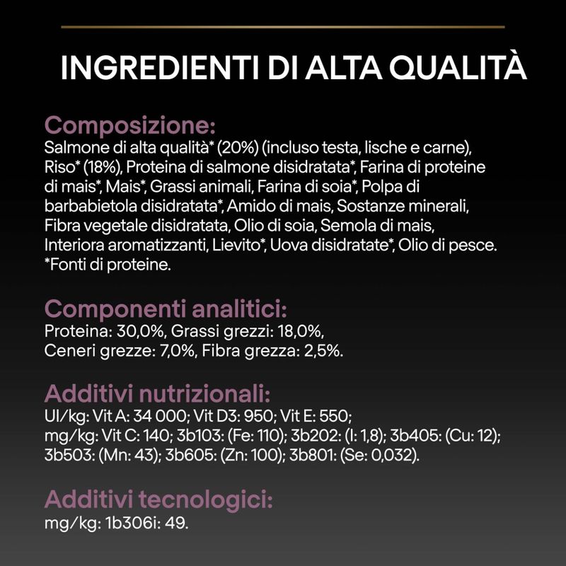 N.B. Il prodotto è disponibile nei formati da 700G, 3KG, kit risparmio 2x3KG gusto Salmone.