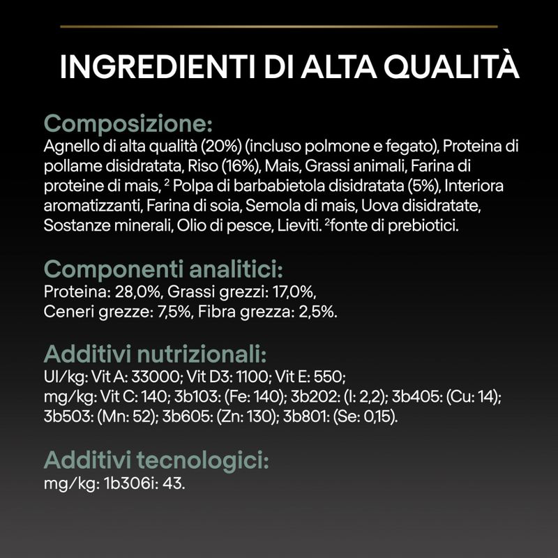 N.B. Il prodotto è disponibile nel formato da 700G, 3KG ed anche come kit risparmio 2x3KG gusto Agnello.