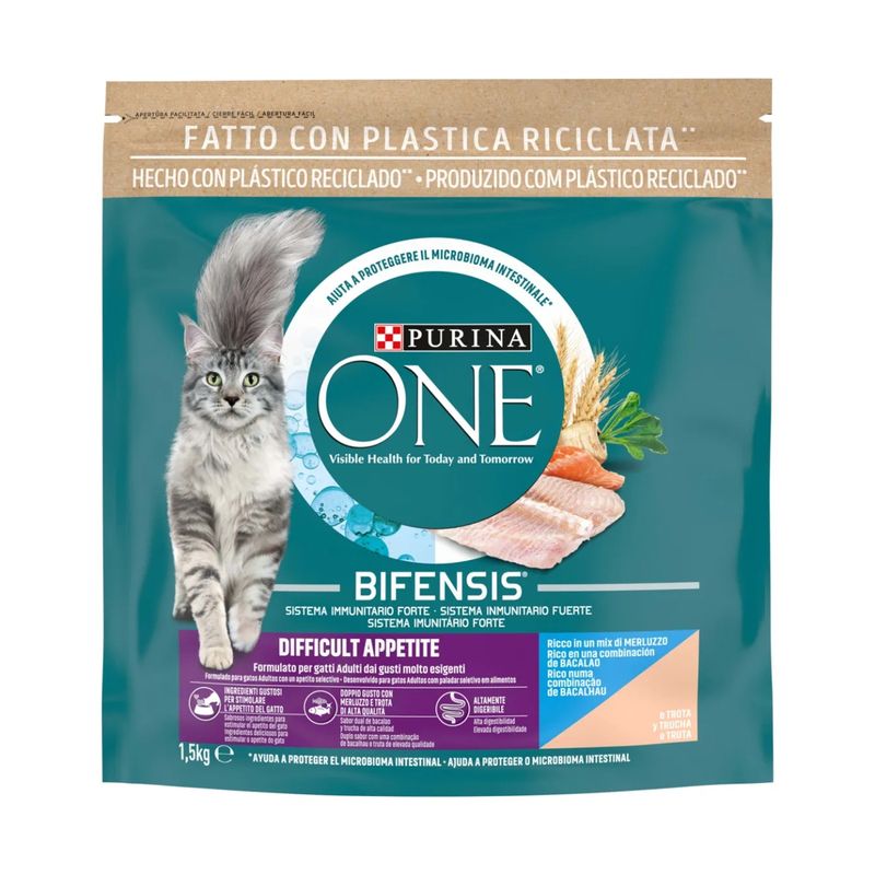 Scegli Purina One Gatto Appetito Difficile Merluzzo e Trota e offri al tuo gatto adulto una nutrizione completa e bilanciata che supporta la sua salute visibile oggi e domani.