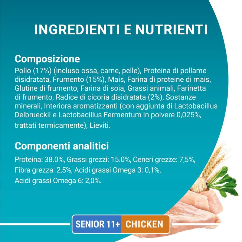 • Contiene proteine di alta qualità provenienti dal pollo.
