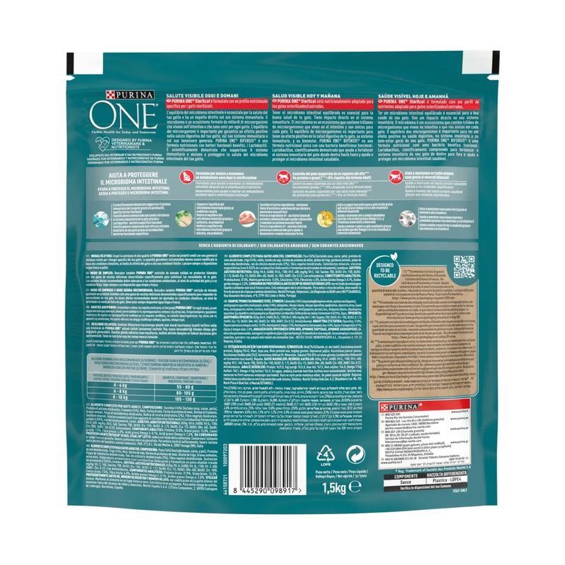 Scegli Purina One Bifensis Sterilcat Crocchette Gatti Tacchino e Frumento e offri al tuo gatto adulto una nutrizione completa e bilanciata che supporta la sua salute visibile oggi e domani.