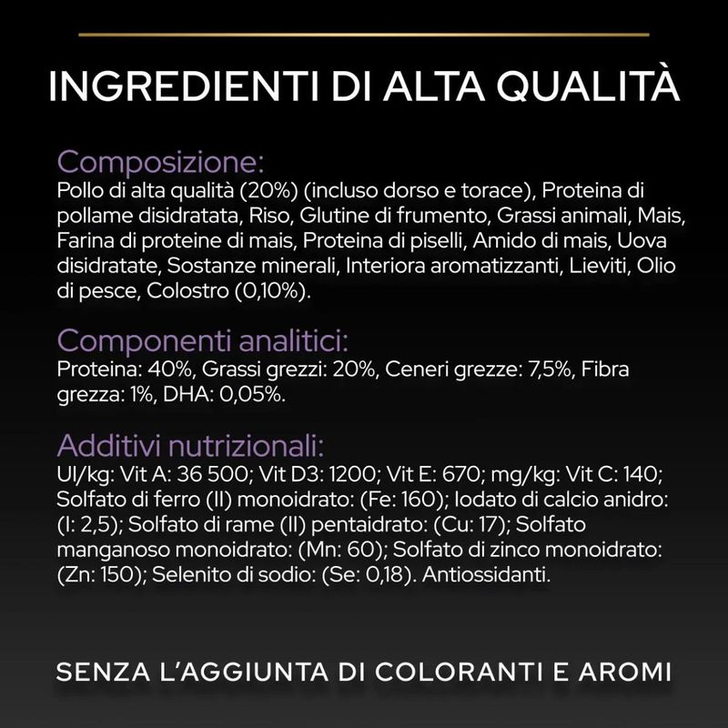Un punto distintivo di questo alimento è l'attenzione alla corretta idratazione, in quanto i gatti disidratati sono più inclini a sviluppare problemi renali e del tratto urinario. La ricetta di Purina Pro Plan Kitten Healthy Start è ricca di acqua e contiene ingredienti che favoriscono l'idratazione, contribuendo così a mantenere il tuo gattino idratato. Le crocchette al gusto di pollo, che costituiscono l'unica fonte proteica animale selezionata, rendono questo alimento non solo nutriente ma anche delizioso.