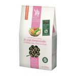 Real Nature Coniglio Nano Adult Optimal Menue 55 è un mangime completo naturale senza cereali, pensato per conigli nani. Contiene fino a 55 ingredienti diversi, tra cui erbe, piante aromatiche e una porzione extra di verdure, garantendo un'alimentazione equilibrata e ricca di nutrienti. Grazie a un processo produttivo delicato, gli ingredienti mantengono intatto il loro valore nutrizionale, offrendo un pasto sano e bilanciato. La formula è priva di stimolanti artificiali dell'appetito ed esaltatori di sapore. La yucca agisce come un controllo naturale degli odori, riducendo quelli delle feci. I monopellet evitano l'alimentazione selettiva e, grazie alla loro forma ottimizzata e alla lunghezza delle fibre lavorate, favoriscono l'usura naturale dei denti e il benessere della flora intestinale. Inoltre, il contenuto ottimale di vitamina D contribuisce alla salute di ossa e denti forti. Questo mangime è completamente senza zuccheri aggiunti, conservanti artificiali, coloranti, aromi o ingredienti geneticamente modificati, garantendo la massima purezza e tollerabilità.