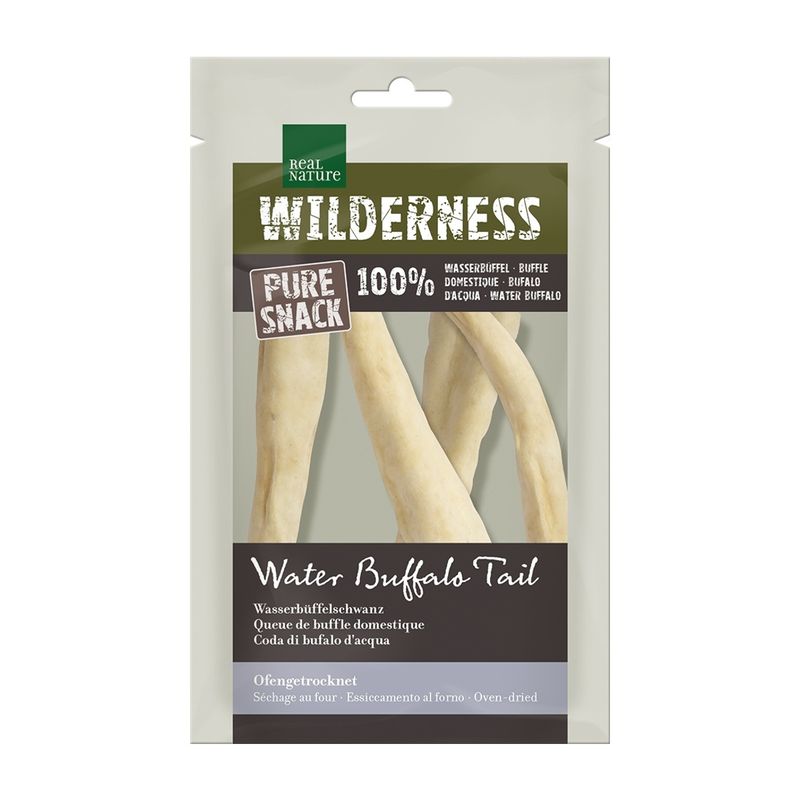 Real Nature Wilderness Snack Dog Coda di Bufalo è uno snack secco naturale per cani, composto al 100% da bufalo d'acqua. Essiccato al forno, questo mix di prelibatezze da masticare è privo di conservanti, coloranti e sostanze aromatizzanti artificiali. Perfetto per le pause, aiuta il tuo cane a soddisfare il suo istinto naturale di masticare, mantenendo i denti sani. Questi snack naturali e adeguati alla specie sono ideali per cani di tutte le età, offrendo un'alimentazione sana e gustosa. Un'ottima scelta per premi e spuntini quotidiani, garantendo una nutrizione semplice e genuina.