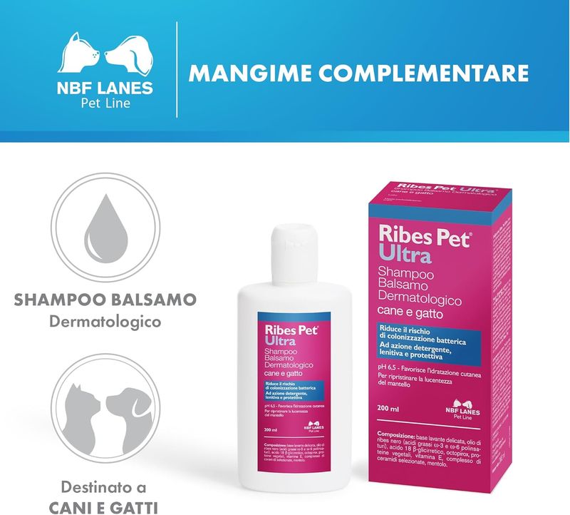 Trasforma ogni bagnetto in un momento di benessere con Ribes Pet Ultra Shampoo-Balsamo Cane e Gatto... e il tuo pet ti ringrazierà con un manto morbidissimo!