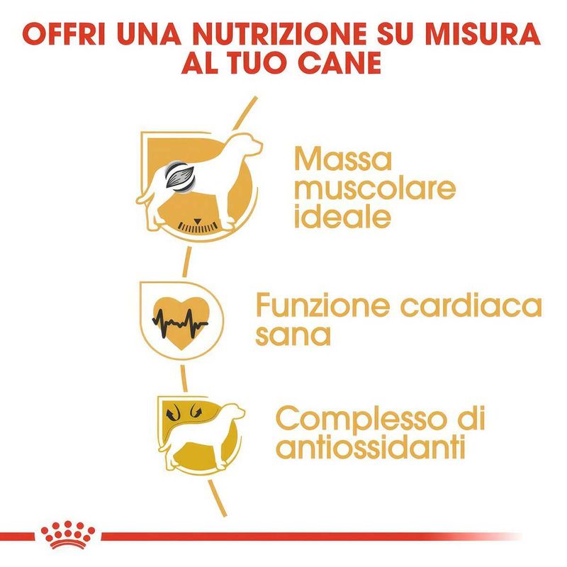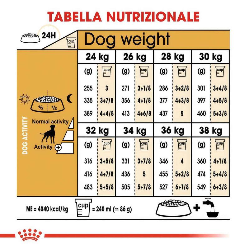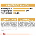 Royal Canin Boxer Adult Alimento Completo per Cani di Razza Adulti e Maturi Oltre 15 Mesi di Età, è formulato appositamente per soddisfare il fabbisogno nutrizionale del tuo cane adulto. contribuisce al mantenimento della massa muscolare, ha un contenuto proteico ottimale ed è ricco di L-carnitina, glucosamina e acidi grassi Omega 3 (EPA/DHA) per la protezione delle articolazioni, supporta la funzione del muscolo cardiaco. Un complesso di principi attivi come il licopene, i polifenoli dell'uva e del tè verde, nonché la vitamina E e C aiutano a rallentare il processo di invecchiamento delle cellule. Infine, la limitazione della fermentazione dei batteri negativi grazie al basso contenuto di proteine non digeribili e l'aggiunta di fibre vegetali garantiscono una digestione ottimale.