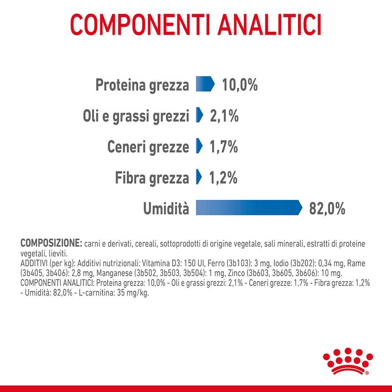 Royal Canin Cat Care Light Weight in Salsa Busta Multipack 48x85G, fettine in salsa è una formula nutrizionale precisa e bilanciata che contribuisce al mantenimento del peso corporeo ideale dei nostri amici pelosi. Grazie al contenuto adattato di proteine, questo alimento aiuta a preservare la massa muscolare essenziale per mantenere un peso ideale. Inoltre, è arricchito con L-carnitina, coinvolta nell'ottimale metabolismo dei grassi. Royal Canin Light Weight Care ha dimostrato risultati positivi, infatti secondo uno studio interno oltre il 90% dei gatti che ha seguito il programma nutrizionale Royal Canin Light Weight Care (combinando alimenti secchi e umidi) ha raggiunto un peso corporeo più sano in soli 8 settimane.