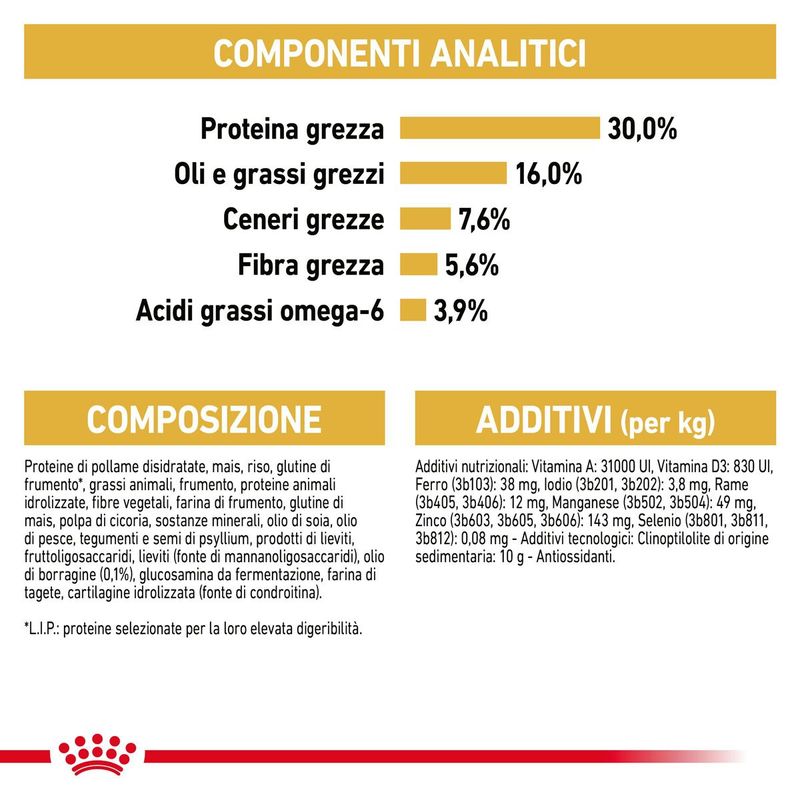 • Contiene EPA-DHA per mantenere il peso e la salute delle ossa e articolazioni.