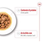 Royal Canin Medium Senior Busta Multipack 20x140G è un alimento umido completo e bilanciato appositamente formulato per soddisfare i fabbisogni nutrizionali dei cani adulti di taglia media a partire dai 12 anni (con un peso tra gli 11 e i 25 kg). La consistenza morbida dei bocconcini in gelatina, insieme alle dimensioni e al gusto ottimale, rende questo mangime ideale per il tuo amico peloso. Contiene vitamina C e vitamina E per sostenere lo sviluppo delle difese naturali del cane. Oltre a mantenere l’equilibrio della flora intestinale, la formulazione contribuisce alla salute digestiva. Grazie ad un apporto energetico adattato aiuta i cani di taglia media a mantenere il peso ideale. Infatti, un cane adulto ha un fabbisogno calorico inferiore rispetto ad un cucciolo, per cui è importante limitare i rischi di sovrappeso. Inoltre, contiene nutrienti specifici che contribuiscono alla salute della pelle e del mantello del tuo cane. È arricchito con EPA- DHA, acidi grassi essenziali omega-3 che aiutano anche a mantenere la salute di ossa e articolazioni. Questo cibo umido contiene il fosforo che contribuisce al funzionamento ottimale del sistema renale nei cani più senior.