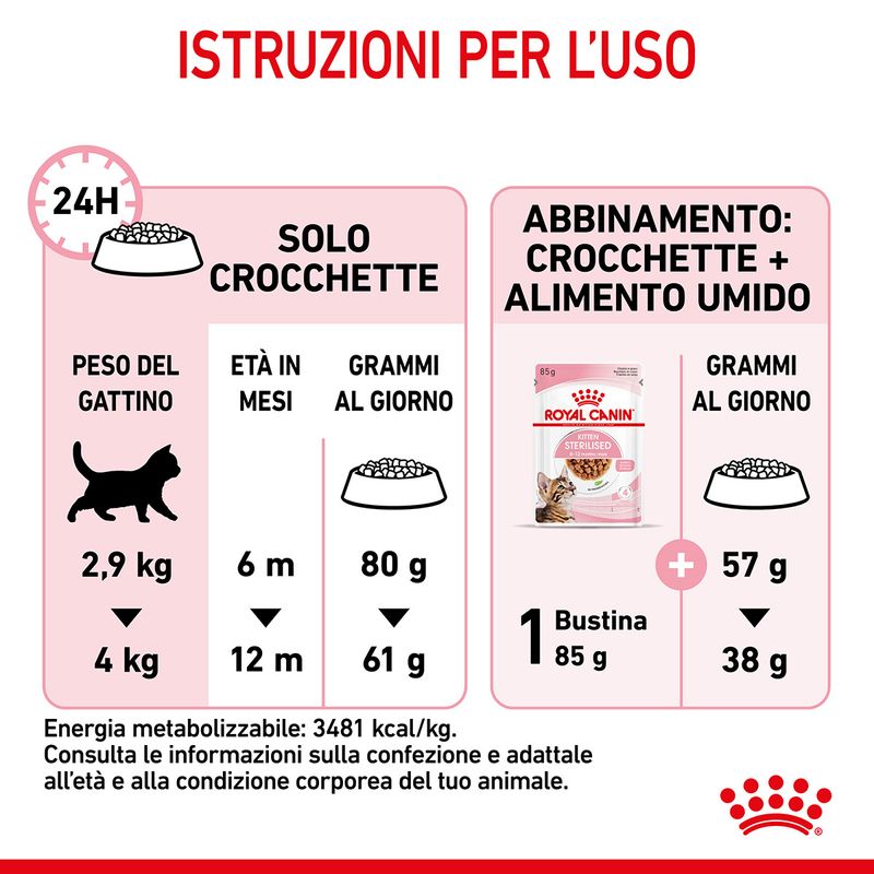 Royal Canin Kitten Sterilised Alimento completo per gattini sterilizzati da 6 a 12 mesi di età è formulato appositamente per rispondere alle esigenze nutrizionali dei