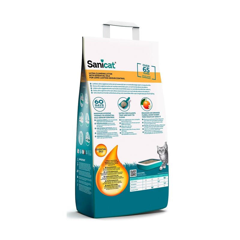 Porta una ventata di freschezza agrumata nella toilette del tuo micio: prova ora la Sanicat Lettiera Essential Oils Orange Floral e profuma di pulito ogni giorno!