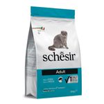 Schesir Cat Adult Ricco in Pesce, per gatti adulti, con ingredienti selezionati e naturali al 100%, è un alimento secco completo e bilanciato. Questo alimento senza conservanti e coloranti aggiunti contiene pesce, come unica fonte di proteina animale di alta qualità e arrichito con Vitamina A e Vitamina E di altissima qualità per un supporto nutrizionale ottimale per il benessere complessivo del tuo felino. L'impiego di una sola fonte di proteine animali può aiutare a ridurre la possibilità di contrarre allergie o intolleranze alimentari. Inoltre, questa prelibatezza contiene taurina, un amminoacido essenziale per il benessere del tuo gatto, promuovendo il corretto funzionamento cardiaco e una visione ottimale e acidi grassi insaturi Omega-3 e Omega-6 presenti nell'alimento contribuiscono a mantenere un pelo splendente e una pelle sana, garantendo al tuo gatto un aspetto radiante e ben curato. Le crocchette di Schesir contengono ingredienti ad azione prebiotica per il controllo del peso grazie al basso contenuto in grassi e con un elevato contenuto in fibre. La speciale miscela di piante aromatiche con attività antiossidante sinergica (uva, citrus, chiodi di garofano, curcuma, rosmarino) aiuta l’organismo a combattere i radicali liberi. Ogni boccone Schesir Cat è un capolavoro gastronomico progettato su misura per soddisfare le esigenze nutrizionali specifiche del tuo felino.