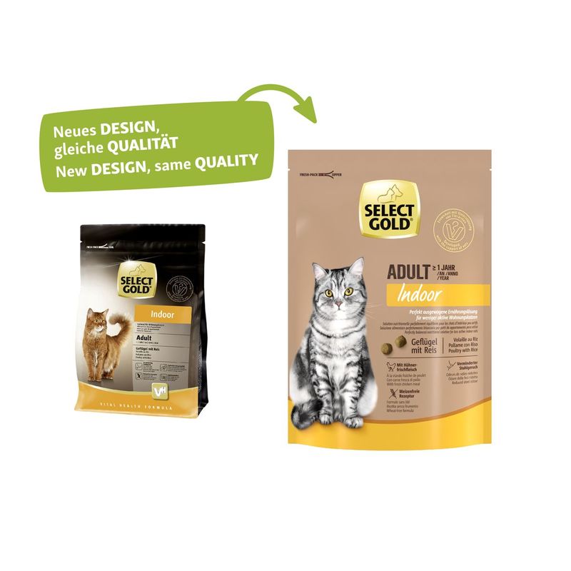 Offri al tuo gatto adulto un'alimentazione di altissimo livello con Select Gold Cat Indoor Adult Pollame con Riso e assicurati che ogni pasto sia un momento di piacere e benessere.