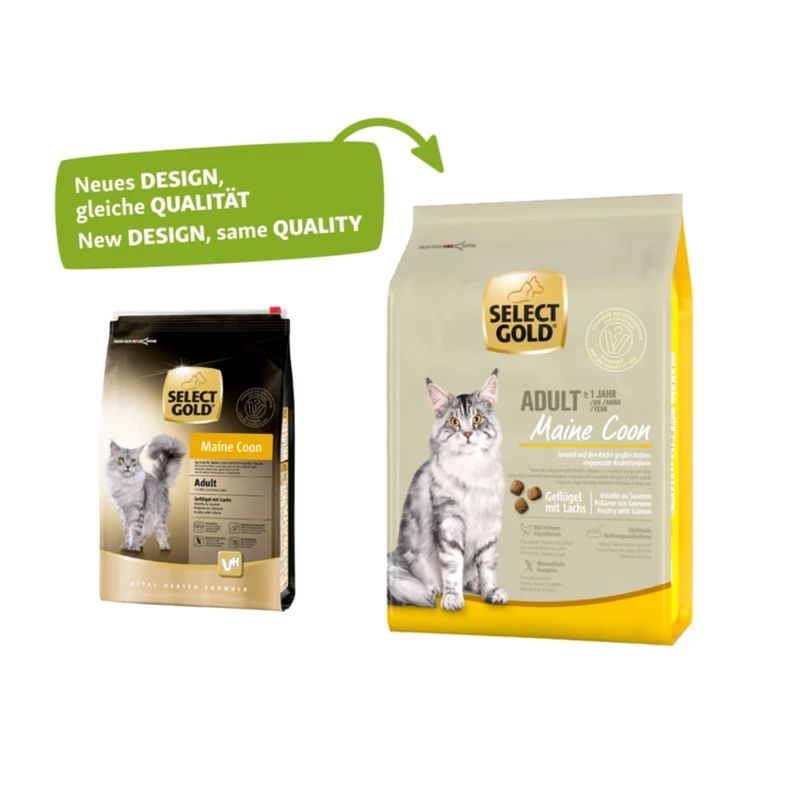 Assicurati di offrire al tuo amico felino l'alimentazione di cui ha bisogno per una vita sana e felice con Select Gold Cat Maine Coon Adult con Pollame e Salmone.