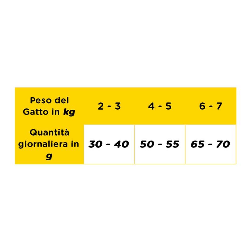 Select Gold Cat Sensitive Digestion Adult Pollame e Riso è un alimento secco premium completo e bilanciato, appositamente sviluppato e bilanciato per soddisfare le esigenze nutrizionali dei gatti adulti con sensibilità digestiva, a partire dai 12 mesi. Le crocchette sono un prodotto di alta qualità e molto appetibile, è stato appositamente realizzato a base di ricetta priva di frumento con gustoso pollo fresco. Questo alimento con pollo fresco completo senza grano, conservanti artificiali, coloranti, aromi, zuccheri e soia aggiunti contiene ingredienti selezionati con cura, rendendolo una scelta ideale anche per i gatti con sensibilità alimentari o intolleranze. Questa formula premium è stata sviluppata tenendo conto delle specifiche esigenze dei gatti adulti, contiene DL-methionina che favorisce la riduzione del valore del pH delle urine, supportando così la salute del tratto urinario e prevenendo eventuali problemi, infatti ha un adeguato contenuto di fosforo e sodio e la corretta quantità di proteine contribuiscono a ridurre il sovraccarico renale. L' inulina prebiotica che favorisce un ambiente intestinale stabile e favorisce una corretta digestione, contribuendo al benessere generale del tuo gatto. Mentre, gli acidi grassi omega-3 e omega-6, insieme a zinco e biotina, contribuiscono alla salute della pelle e alla lucentezza del pelo, garantendo al tuo gatto un aspetto radioso e ben curato. Inoltre, la polpa di barbabietola, le fibre di cellulosa e la buccia di psillio contribuiscono a ridurre la formazione dei fastidiosi boli di pelo nel tratto digestivo, favorendo l'escrezione naturale dei peli ingeriti.