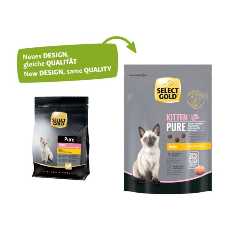 Assicurati di offrire al tuo cucciolo di gatto l'alimentazione di cui ha bisogno per una crescita sana e felice con Select Gold Pure per Kitten con Pollo.