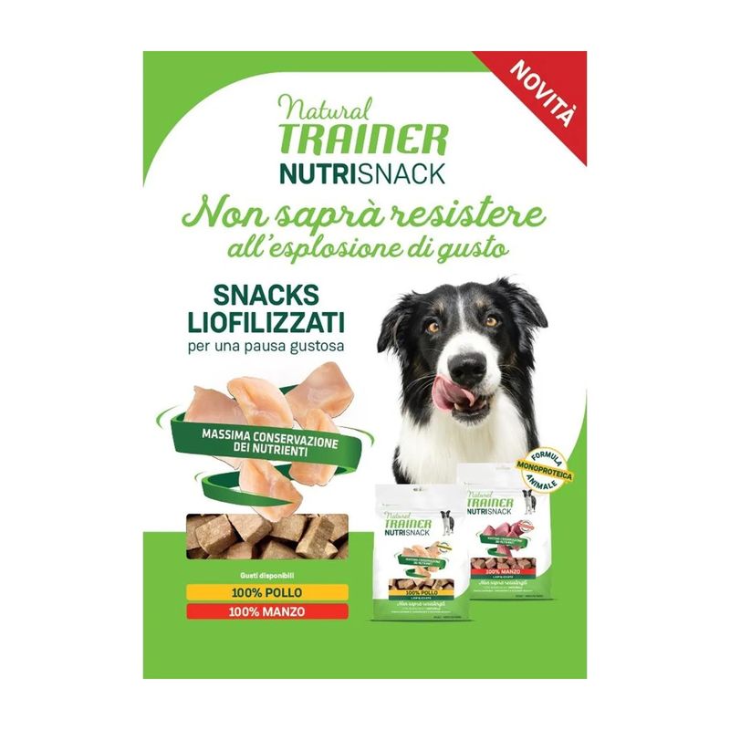Scegliendo il Set Prova Multigusto 4x50G Natural Trainer Dog Nutri Snack delizierai il tuo amico peloso con uno snack naturale, sano e delizioso tra un pasto e l’altro.