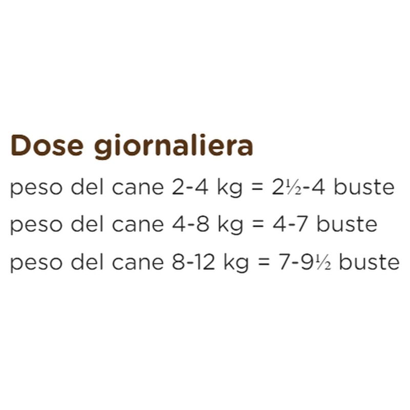 N.B. Il prodotto è disponibile nel formato busta multipack da 24x100G, nei seguenti gusti: Pesce bianco, Coniglio e ortaggi, Pollo e prosciutto, Vitello.